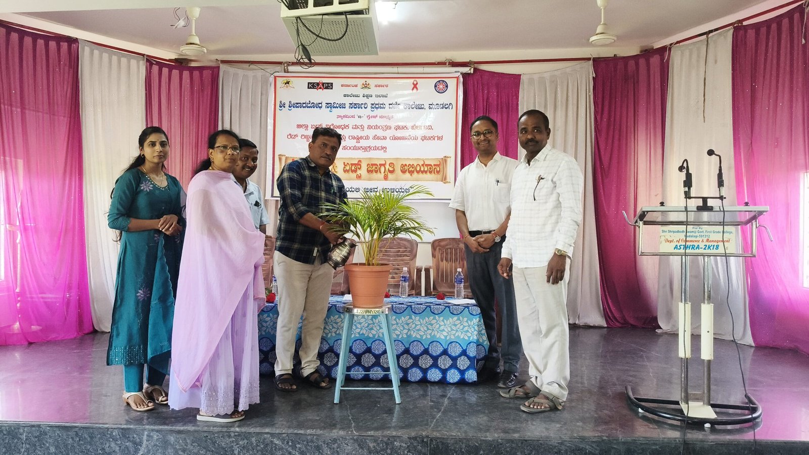 ಸ್ಥಳೀಯ ಶ್ರೀ ಶ್ರೀಪಾದಬೋಧ ಸ್ವಾಮೀಜಿ ಸರಕಾರಿ ಪ್ರಥಮ ದರ್ಜೆ ಕಾಲೇಜು ಮೂಡಲಗಿಯ ರೆಡ್ ರಿಬ್ಬನ್ ಕ್ಲಬ್ ಮತ್ತು ರಾಷ್ಟ್ರೀಯ ಸೇವಾ ಯೋಜನೆಯ ಘಟಕಗಳು ಹಾಗೂ ಜಿಲ್ಲಾ ಏಡ್ಸ್ ನಿರೋಧಕ ಮತ್ತು ನಿಯಂತ್ರಣ ಘಟಕ ಬೆಳಗಾವಿ ಇವರ ಸಂಯುಕ್ತಾಶ್ರಯದಲ್ಲಿ ಶನಿವಾರದಂದು ಎಚ್ಐವಿ ಮತ್ತು ಏಡ್ಸ್ ಜಾಗೃತಿ ಕಾರ್ಯಕ್ರಮವನ್ನು ಕಾಲೇಜಿನ ಸಭಾಂಗಣದಲ್ಲಿ ಹಮ್ಮಿಕೊಳ್ಳಲಾಗಿತ್ತು.
